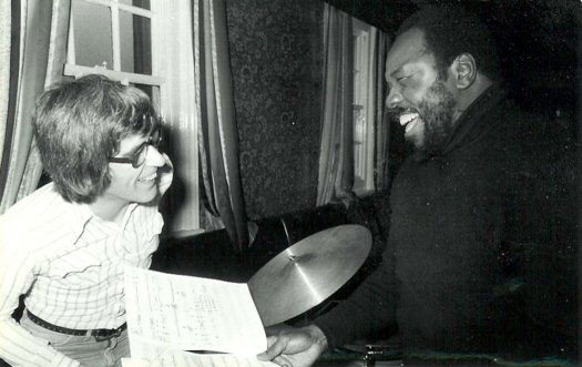Thad Jones rehearsing the TFJO in 1976. L-R rear: Bryan Layton, Dave Markee, Tony. L-R front: Bill Charleson, Stan Robinson, Dave Hardy, Thad Jones.